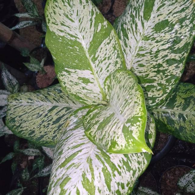 Daun berwarna hijau kekuningan dengan becak warna hijau tua. Aglaonema Bidadari Rp 133000. Tempat yang baik untuk menanam tanaman ini adalah di dalam rumah kaca yang dapat melindunginya dari perubahan suhu dingin dan memberikan sinar matahari yang cukup.