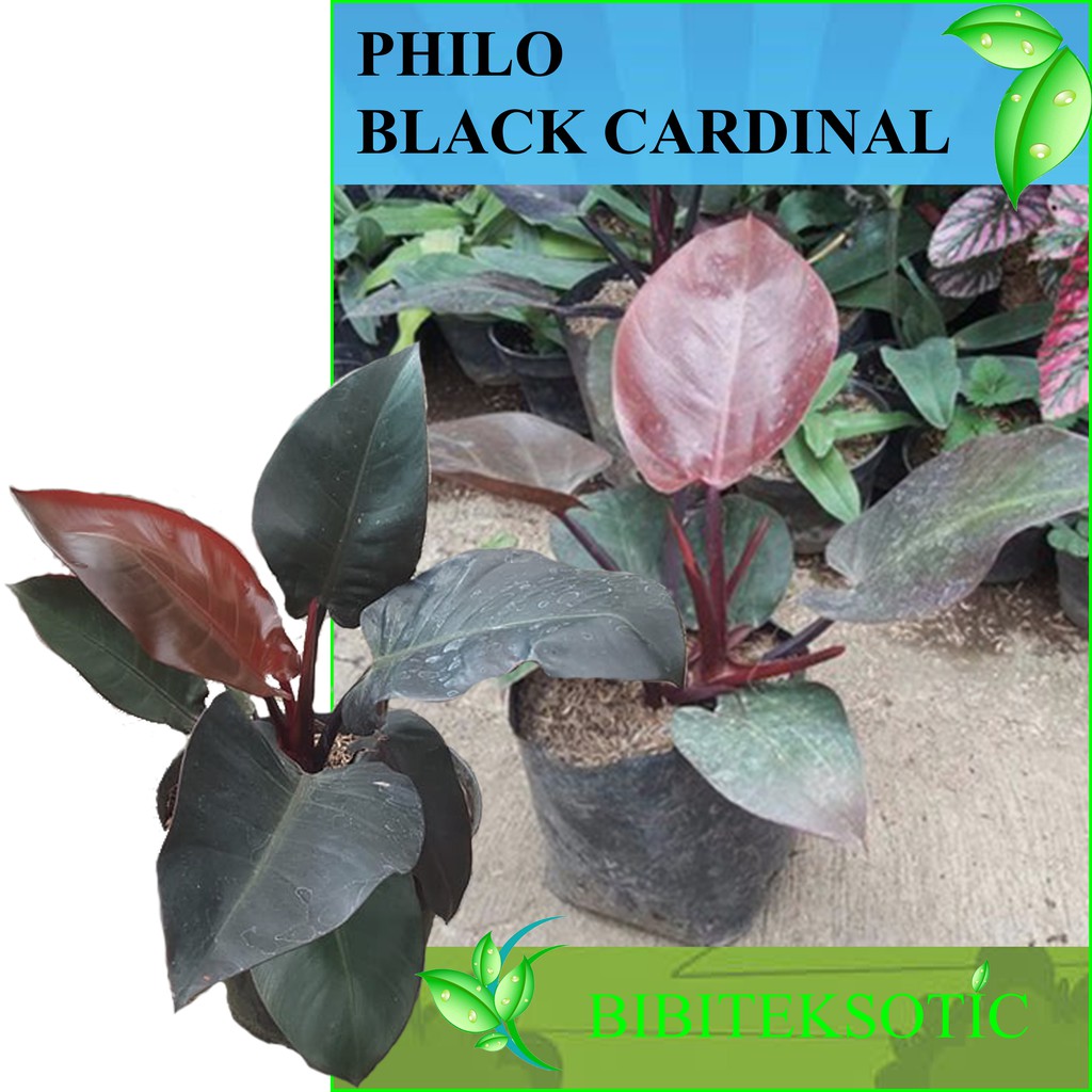 As the leaves mature it will turn to almost black. Philodendron Black Cardinal has blackish green broad oval leaves. Tanaman philodendron yang sangat unik dengan daun berukuran besar berwarna tembaga sampai merah burgundy gelap sehingga hampir hitam sempurna dan juga terlihat mengkilap.